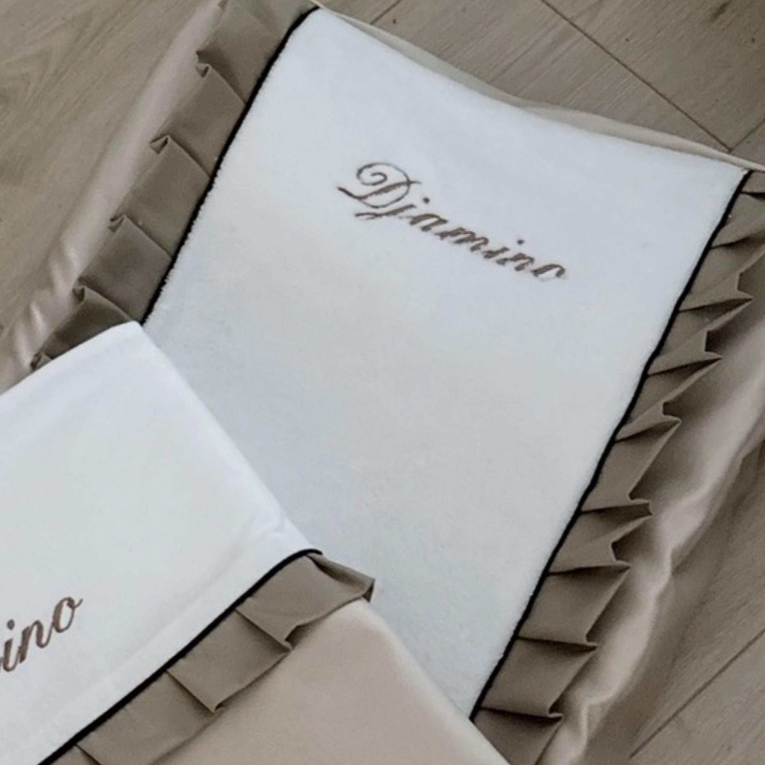 Aankleedkussenhoes Holland Velvet met zwart detail en taupe roezels aantal