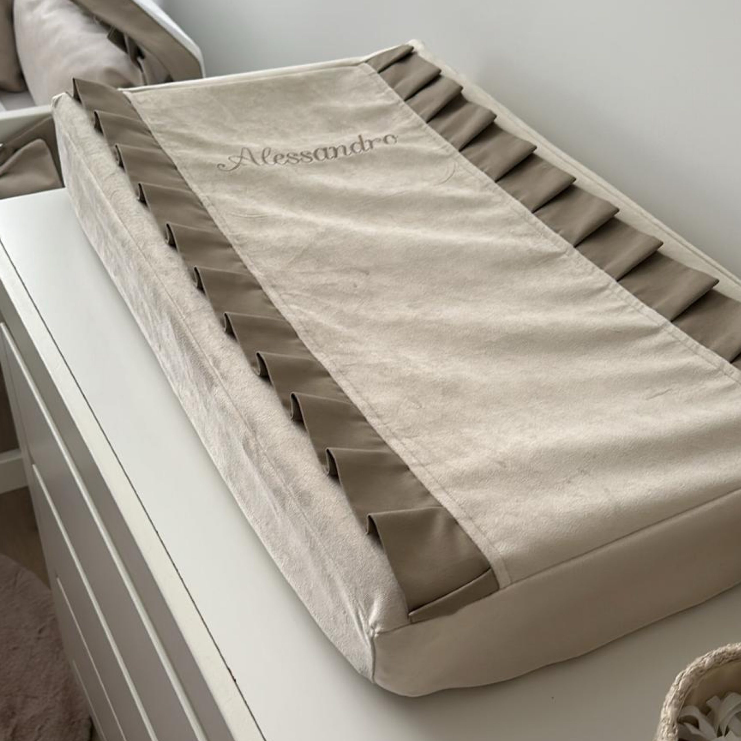 Aankleedkussenhoes Holland Velvet met zwart detail en taupe roezels