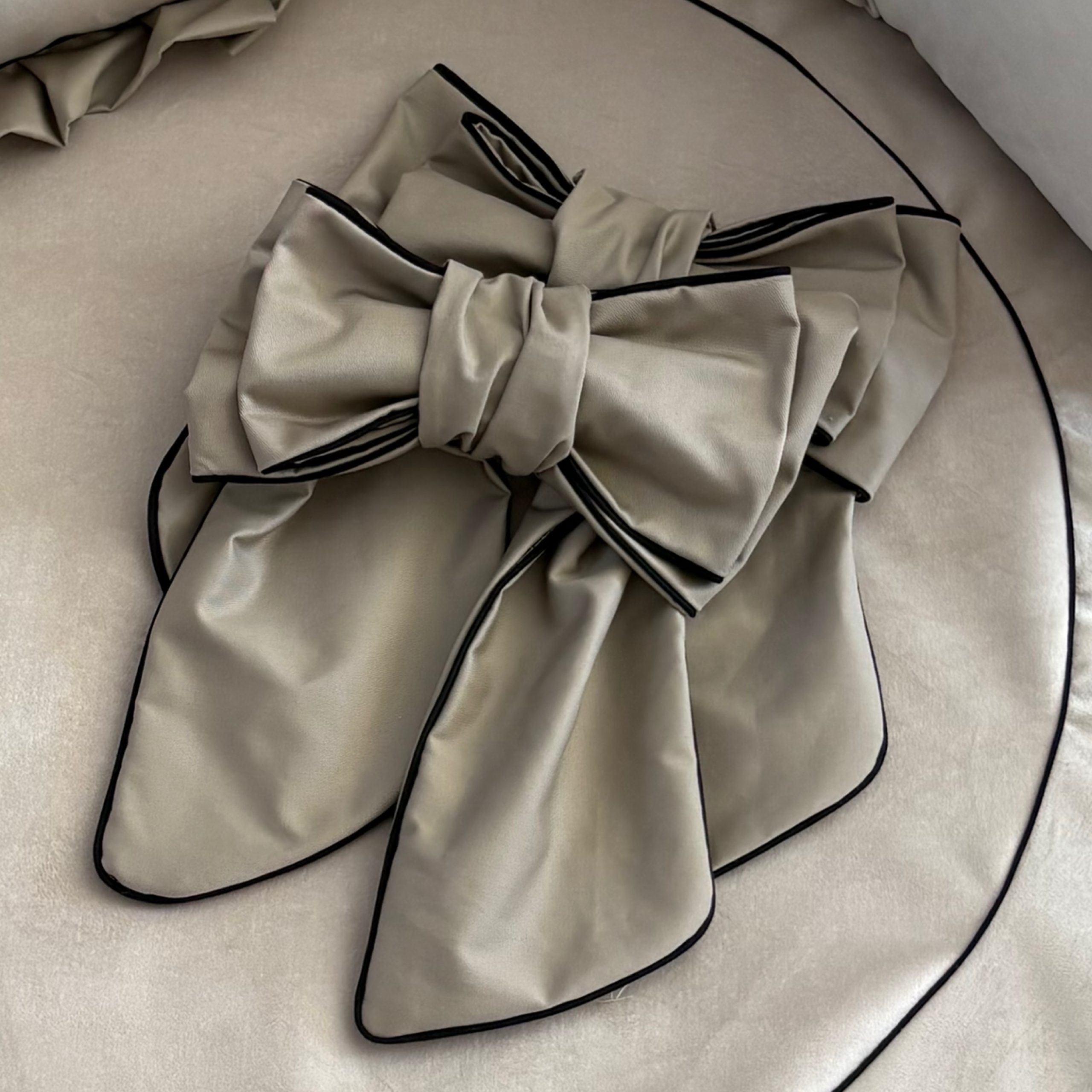 Box / Bedstrik Taupe katoen dubbele strik met zwart detail