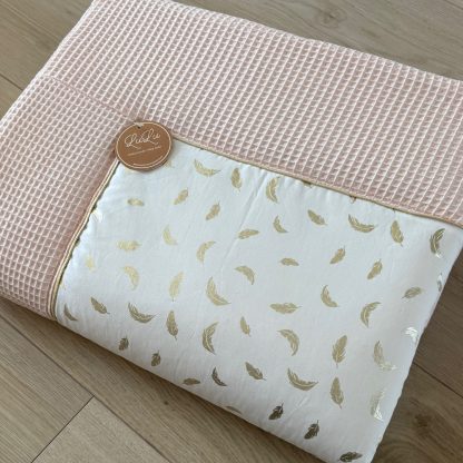 Boxkleed met een LUXE goudprintje, u heeft keuze uit diverse kleurtjes wafelstof, erg leuk om te combineren met bijvoorbeeld onze babynestjes en boxranden. Onze boxkleden worden gemaakt van 100% katoen
