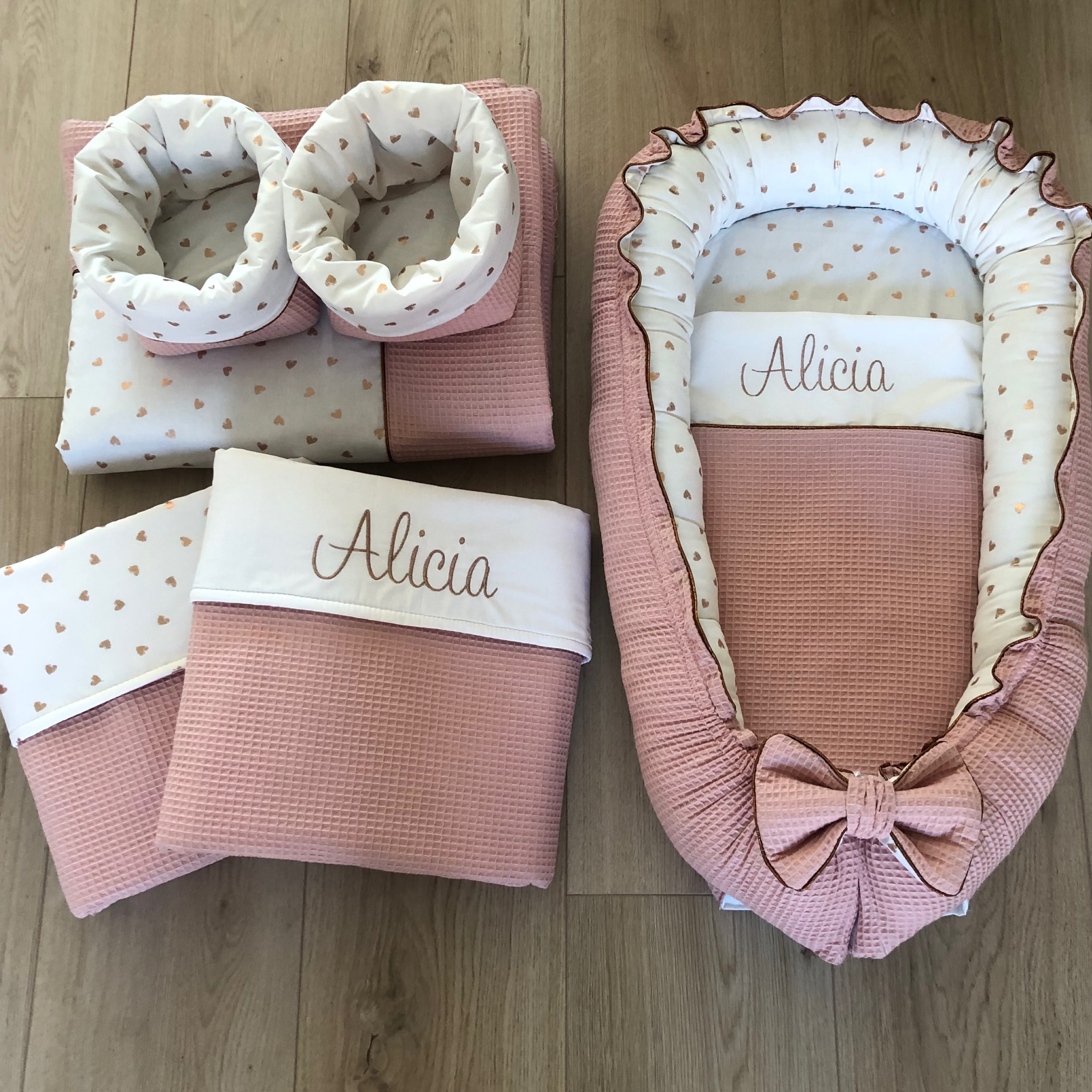 Voor deze set heeft u keuze uit diverse kleurtjes wafelstof, luxe printjes de producten worden afgewerkt met biesje naar keuze uit de dropdown menu, heeft u een bepaald printje in gedachten mail ons gerust voor de mogelijkheden
